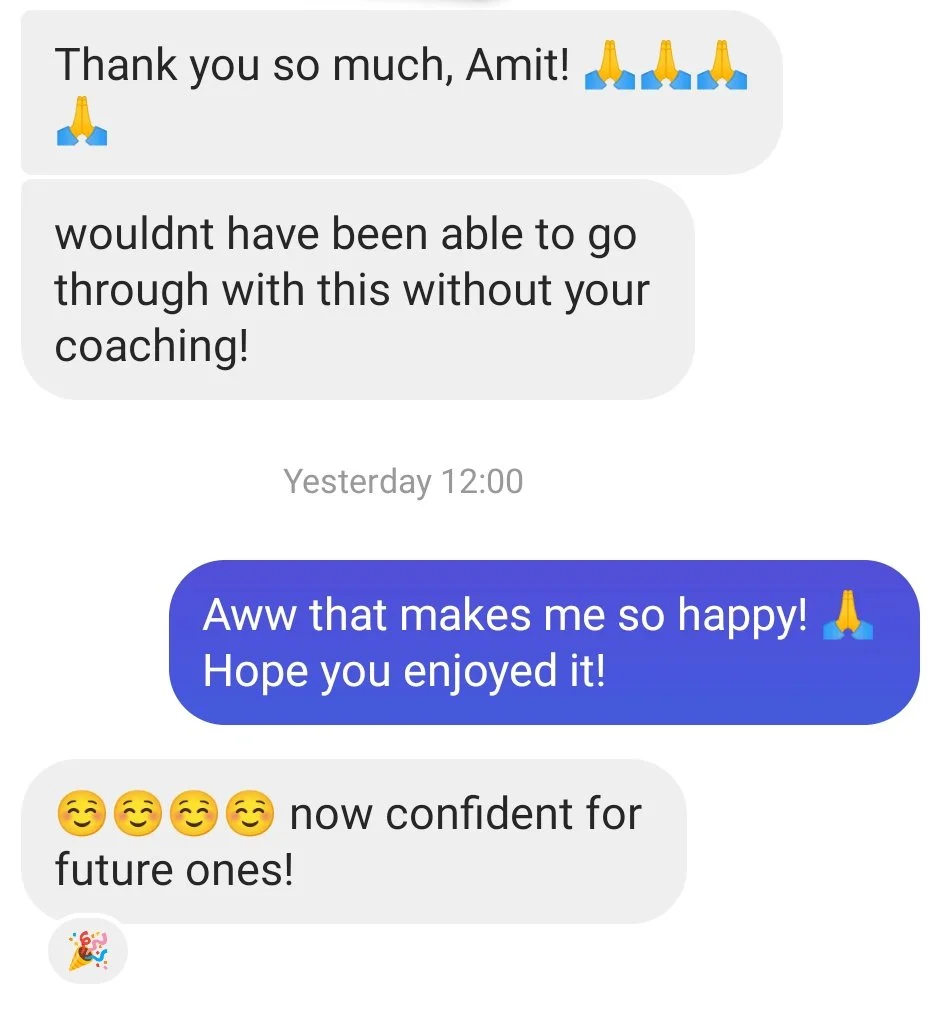"Amit's coaching is characterized by a level of supportive excellence that surpassed my previous experiences with various international coaches."